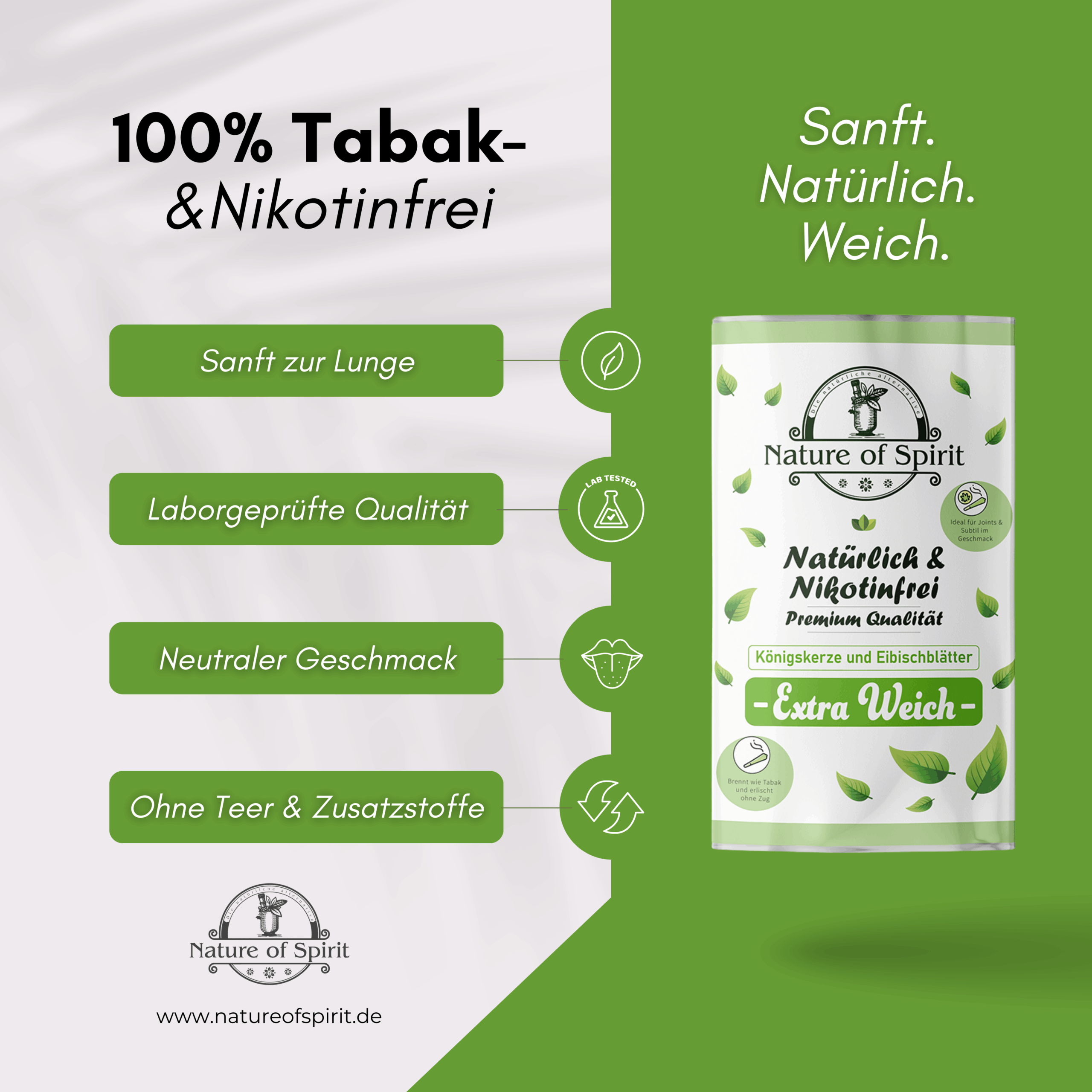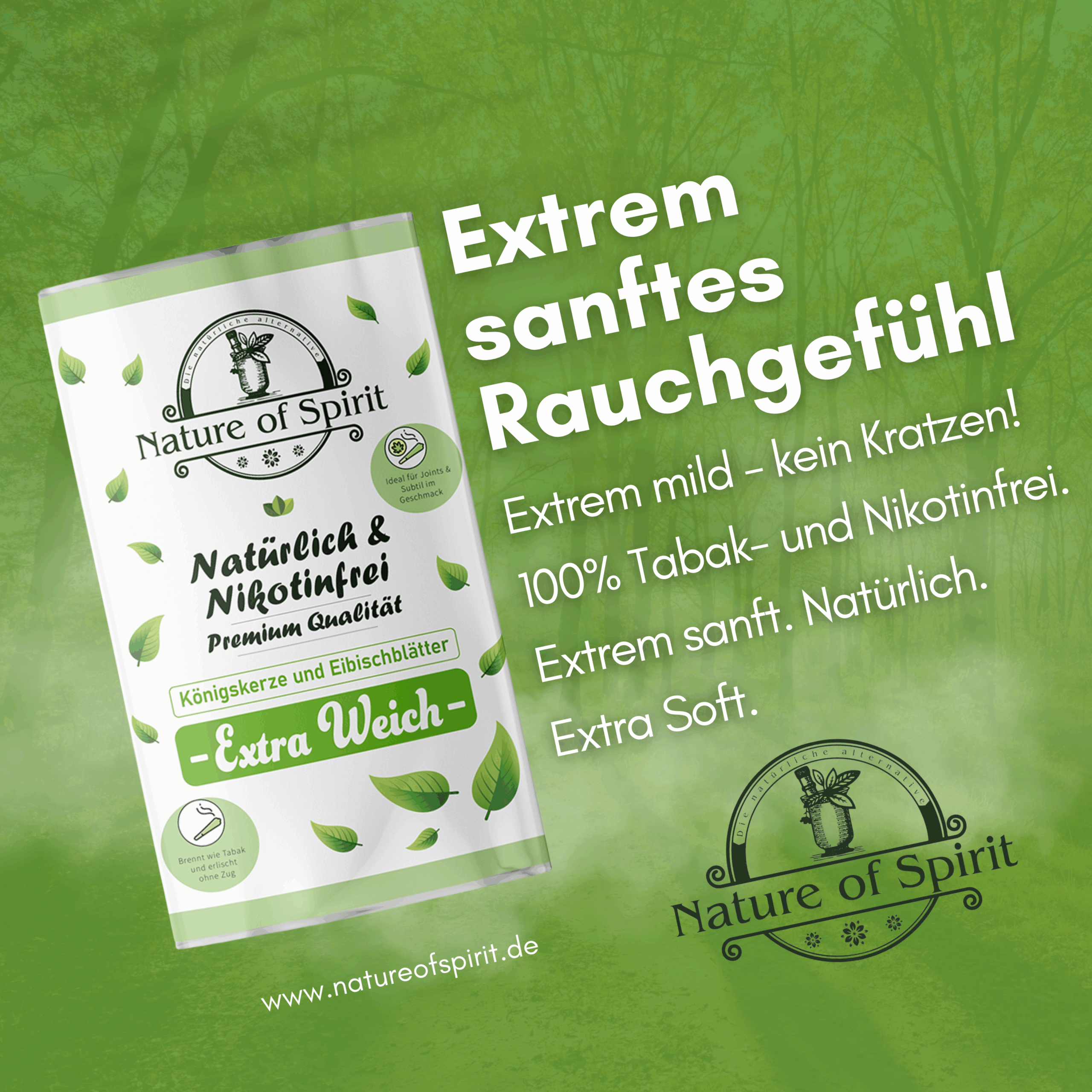 Bei Nature of Spirit sind wir mehr als ein Shop: Wir sind Ihr innovativer Begleiter für Tabakersatz ohne Nikotin. Extra Soft steht für Qualität – handverlesen, neutral versendet aus Deutschland.