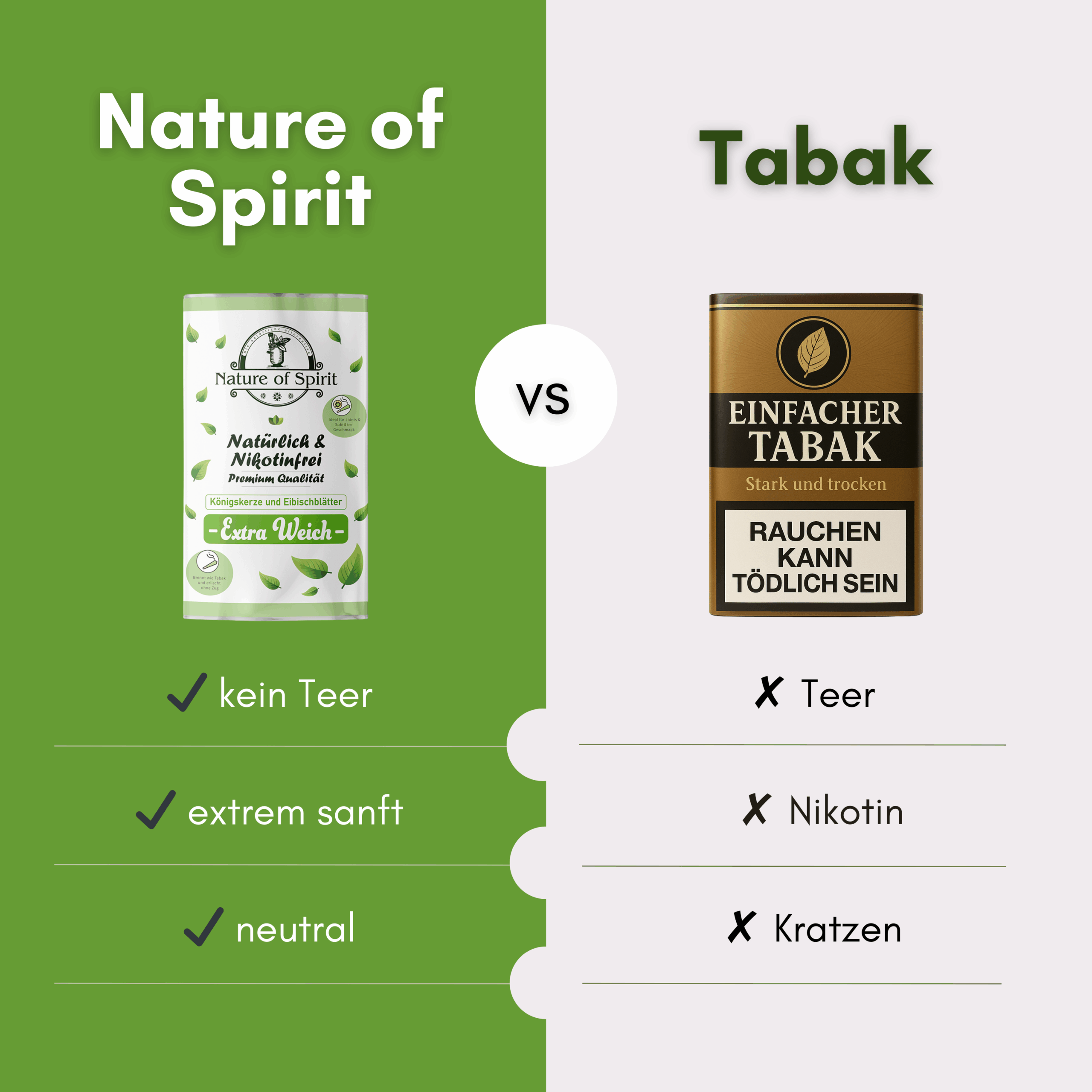 Extra Soft übertrifft Tabak: Nikotinfrei, teerfrei und reizarm – wissenschaftlich milder durch schützende Kräuter. Kein Kratzen, dezenter Duft, ideal für Umsteiger. Gesünder und nachhaltig, zu 0,43 €/g. Es bereichert Ihr Ritual – entdecken Sie die Vorteile!